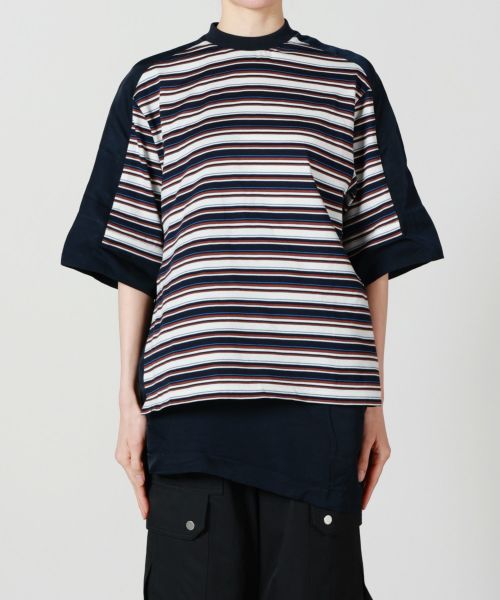 【デザイン】 TOGA PULLA(トーガ プルラ)のTシャツ。一見ベーシックでありながら、裾や肩に異素材を組み合わせることで個性を効かせたデザインがTOGA PULLAらしい魅力です。シルエットは程よくオーバーサイズで、身体のラインを拾いにくく、リラックス感のある着用感。ラフになりすぎないバランスで、デニムやワイドパンツはもちろん、スラックスやタイトスカートと合わせたきれいめな着こなしにも好相性です。ジャケットやシャツのインナーとしても使いやすく、シーズンを通して活躍する一着です。