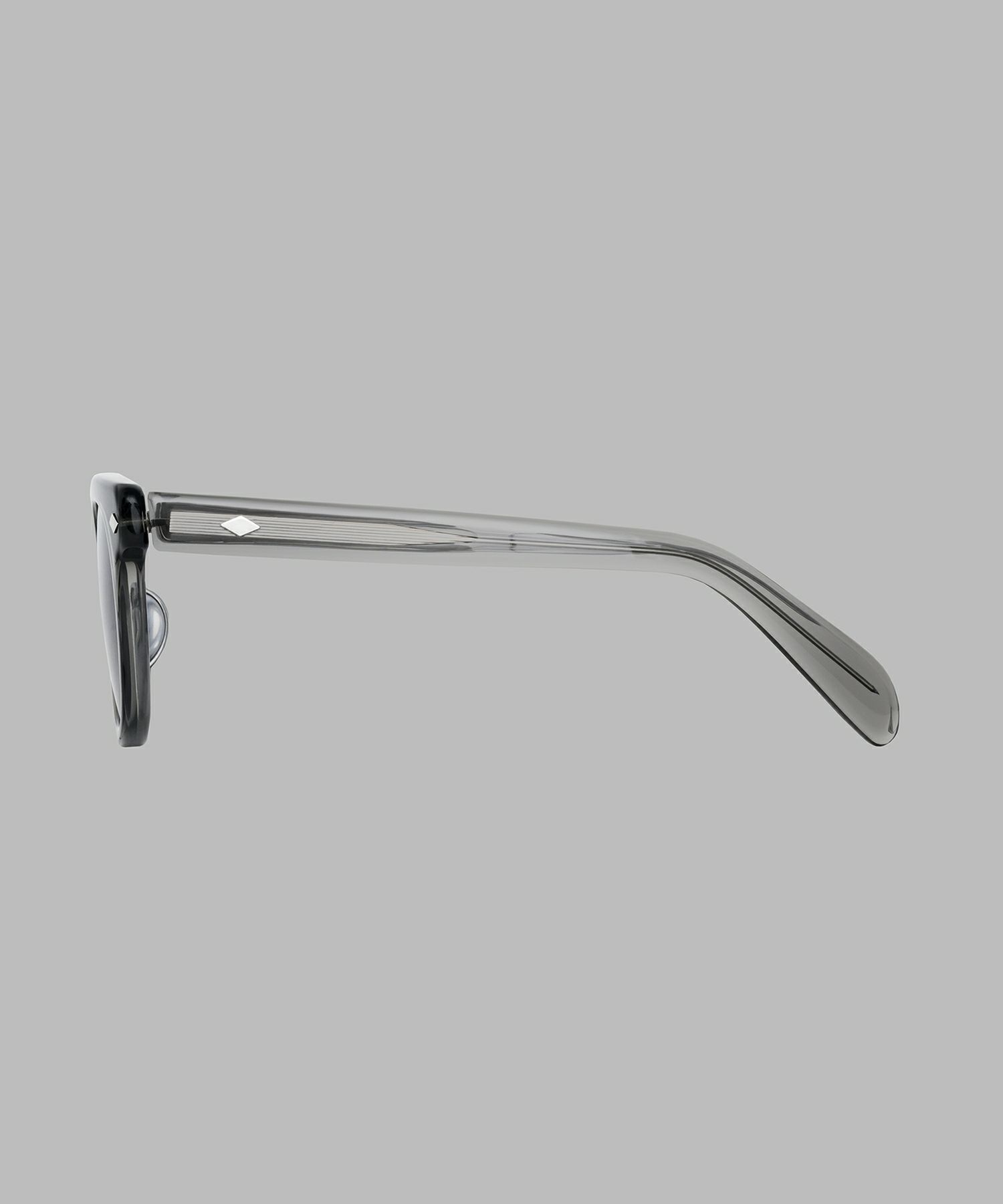 フロントは高密度で変形が少なく、人体からの影響、経年変化がしにくい特殊なプラスチックであるHighcount acetate を使用しており、L字型の特殊な形状を有したβチタン製の丁番は、掛け心地の良さとオプティシャンによる調整のしやすさという目的を追求した結果、生まれた形状となっています。テンプルは適正な重量と側頭部へ接する面積を考慮した設計となっており、ボリュームのある生地感からは想像できないような軽さとフィット感を実現し、掛け心地が良く、軽く、強度があるという理想的なプロダクトを追求されたアイテムです。