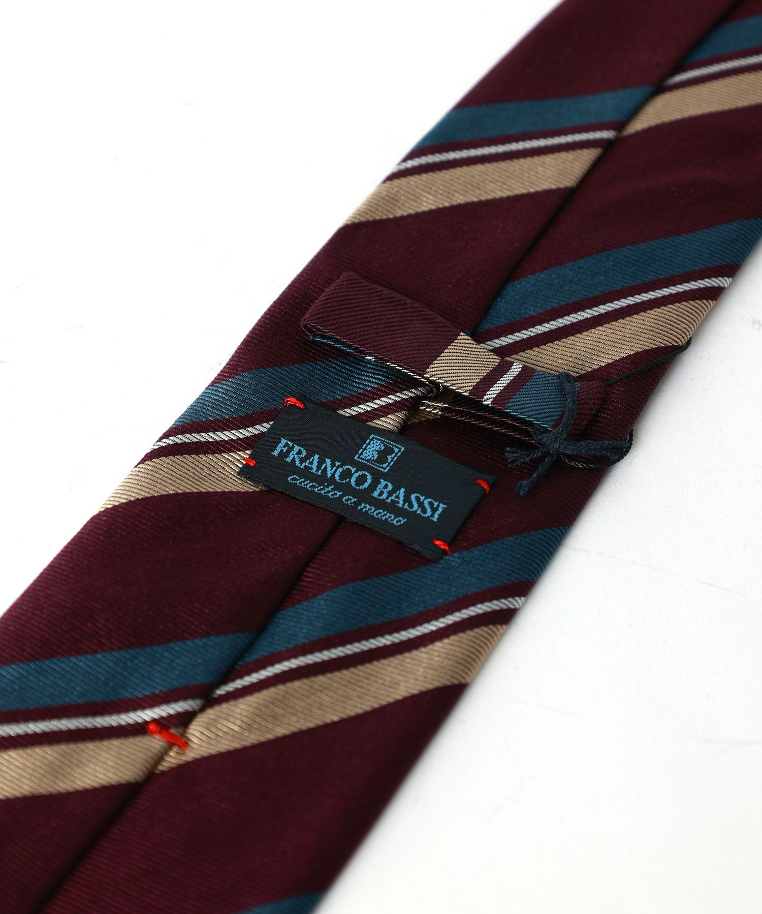1973年にイタリア北西部にある世界的に有名なシルクの生産地、コモに設立された「FRANCOBASSI」。ファミリー経営を基盤とし、手裁断と手縫製による生産と時代の空気を取り入れるトレンド性の高さが特徴。シーズン毎に約300種類ものデザインを発表し、冬はウールとカシミヤ、夏はシルクやリネンなど素材にこだわったタイ作りを手がける。現在も縫製は100%イタリア・コモで行なわれているという。