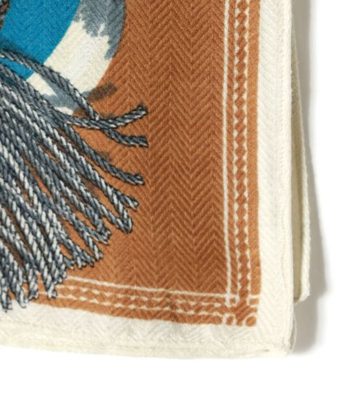 【デザイン】manipuri(マニプリ)のストール。鞭、鎧、勒、手綱などの馬具を幾何柄と共に大胆な配置で構成しました。季節問わずアレンジ出来る柄として展開しています。