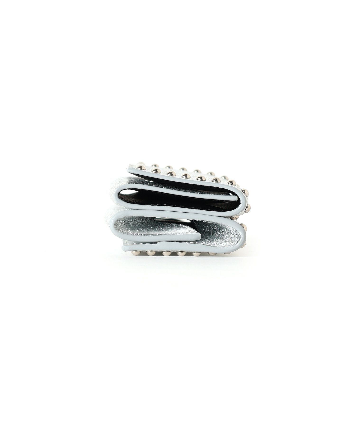 【デザイン】 J&M DAVIDSON (ジェイアンドエムデヴィッドソン)のミニウォレット。両面にスタッズが施された三つ折りタイプのミニ財布。片方にマチのあるコインケース、もう片方にお札を折らずに収納可能なスロットと3つのカードスロットを備え、コンパクトながらも収納性に優れたデザインです。