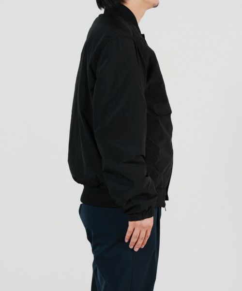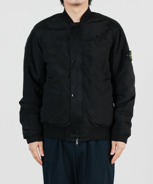 【デザイン】 Stone Islandの玉虫色のNylon Metal生地を使用したボンバージャケット。この素材はアイコニックなNylon Metalを進化させたもので、再生糸ECONYLを使用。この糸は、不要になったプレコンシューマ・ポストコンシューマナイロンを複雑な解重合処理で再生することで、従来の原材料を用いたナイロンと同じ特性を実現しています。PrimaLoft-TCの中綿入り。ガーメントダイを施すためStone Islandが開発に参画した高性能素材で、リサイクル素材70%の断熱繊維を独自に混紡しています。PFCフリーの特殊な撥水物質を加えた2種類の色素配合でガーメントダイを施しています。 襟はリブ編み。縦長のハンドポケットはファスナーで開閉します。両サイドとインナースリーブにナイロンテープのアップリケ付き。左袖にStone Islandのバッジ。袖口には伸縮性を持たせています。裾のバンドはリブ編み。スナップボタン留めナイロンテープの下に隠れたダブルスライダーファスナーで開閉します。