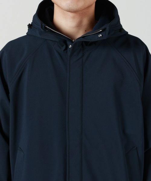 【素材】三層構造の高機能素材を使用。表地には伸縮性のあるポリエステルキャンバス地を採用し、e.dye Waterless Color Systemによって環境負荷を抑えつつ、美しい発色を実現しています。中間層には、防風・防水・透湿性を兼ね備えたポリウレタンの薄膜をラミネート加工。裏地には柔らかく肌触りのよいポリエステル素材を配し、快適な着心地をサポートします。見た目にはすっきりとしたマットな質感とハリがあり、撥水性や耐風性にも優れているため、急な天候変化にも対応。機能性とデザイン性を高次元で両立した、STONE ISLANDならではのテックアウターです。