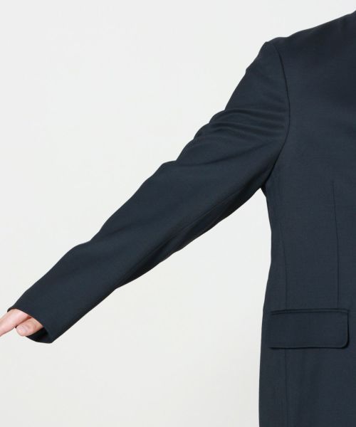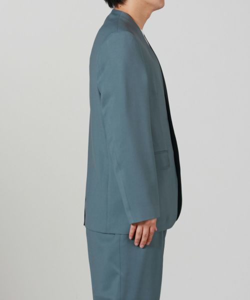 快適な着用感を提供する、ノーカラージャケットは、肩パットを廃し、芯地使いによって肩周りに肉を持たせながら保形性を担保したデザイン。 日常的な着用はもちろん、ドレスアップまで様々なシチュエーションに対応します。