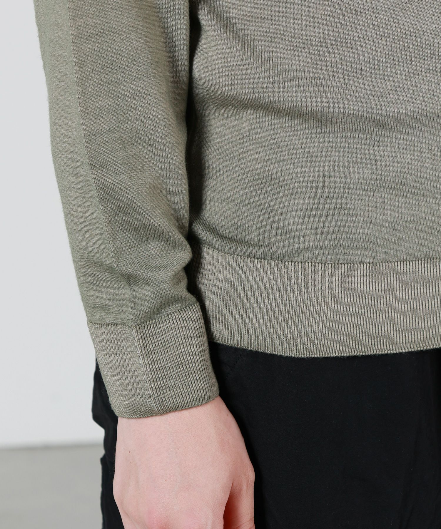 【素材】 ハイゲージのメリノウールニットを使用。羽目らかな肌触りでチクチク感のない素材です。
