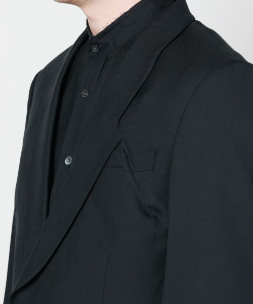 【素材】 さらりとした肌触りと美しいドレープを持つトロピカルウール素材を使用。 軽やかで通気性に優れ、滑らかな質感がタキシードジャケット特有の品格を一層際立たせます。 シーズンを問わず快適に着用できる汎用性の高いファブリックです。