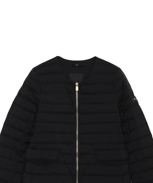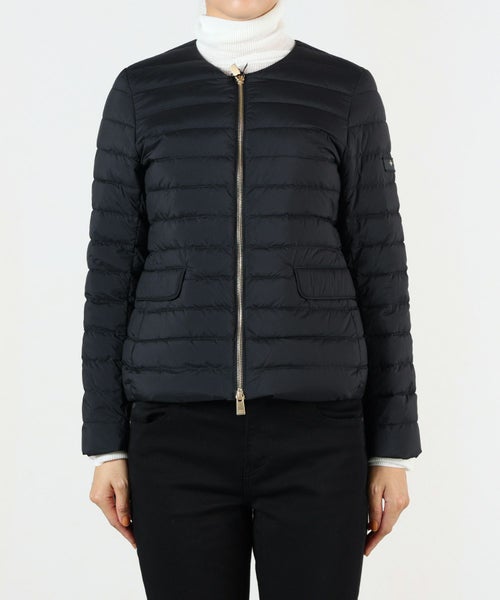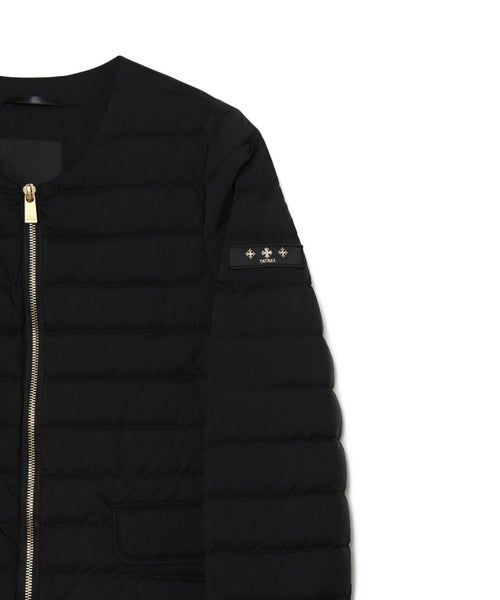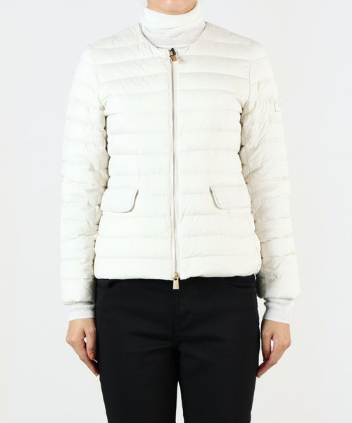 【デザイン】 TATRAS(タトラス)のライトダウンジャケット。ロングセラーのクルーネックタイプ。ダウン量は多めながら、やや細身のフィット感とウエストをさりげなく絞ったシルエット、肩の張りを拾わないこだわりの設計でコンパクトな着用感です。衿の位置を従来よりmm単位で下げたことにより、デコルテラインがよりすっきりとした印象に。秋冬のレイヤードスタイルを上品にまとめてくれるアイテムです。