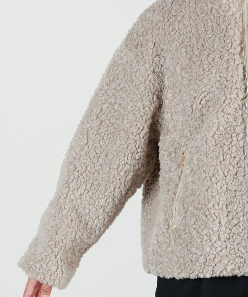 【デザイン】 TATRAS8タトラス)のボアブルゾン。ウールのような質感のポリエステル糸を使用したシープ調ボアのブルゾン。