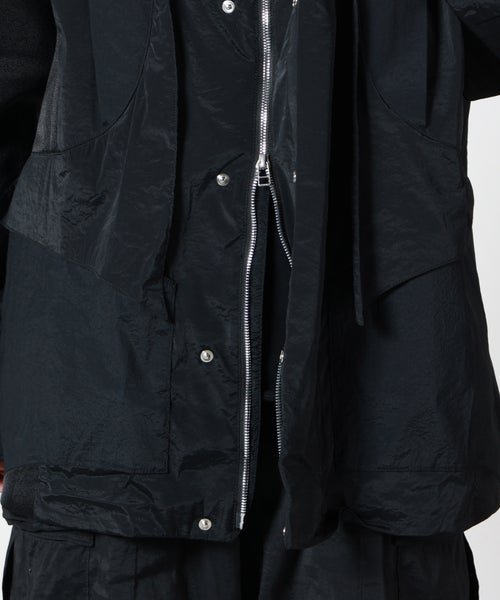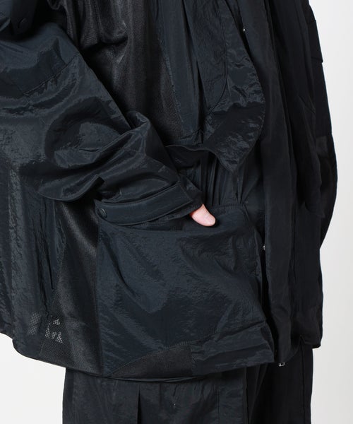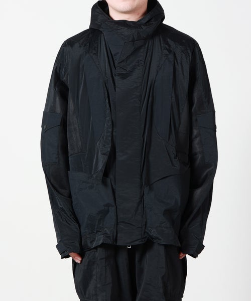【デザイン】 yoshio kubo(ヨシオクボ)のブルゾン。透け感のあるメッシュ素材が、涼しげで軽やかな印象を与えるライトアウター。異素材を組み合わせた切り替えデザインが、シンプルながらも奥行きのある表情を生み出します。部分的にシアー素材を配置することで、抜け感のある見た目と快適な着心地を両立。さりげない透け感がスタイリングに旬のニュアンスを添えます。フード付きのデザインで程よくカジュアルさをプラスしつつ、袖口はスナップボタンで調節が可能。裾のドローコードを絞ればシルエットの変化も楽しめ、その日の気分やコーディネートに合わせた着こなしが叶います。機能性とデザイン性を兼ね備えた、着回し力の高い一着です。