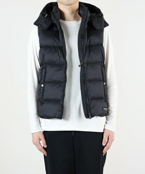 【デザイン】TATRAS(タトラス)の「POSEIDONE(ポセイドーネ)。ロングセラーのダウンベストタイプです。ダウンステッチがやや広めでカジュアルな印象ですが、コンパクトなサイズ感と高級感のあるメタル調のファスナーで都会的に着こなしていただけるアイテム。被った時に立体的に見えるお椀型シルエットのフードは、ファスナーにより取り外しが可能。フードレスの時にはファスナー部分が見えないこだわりの仕様になっています。撥水加工が施されており、デイリー使いに最適な一着です。