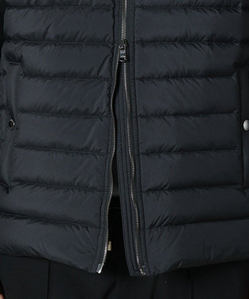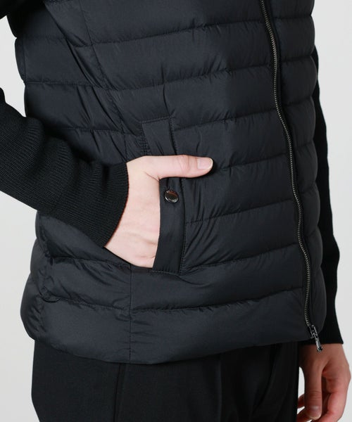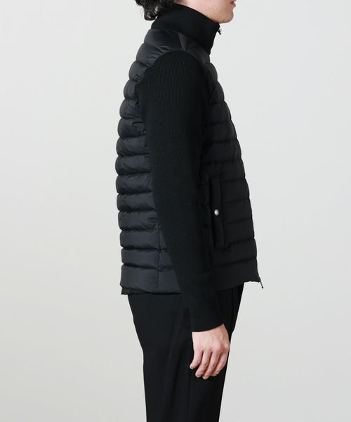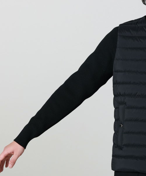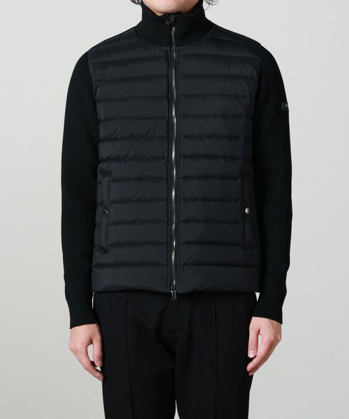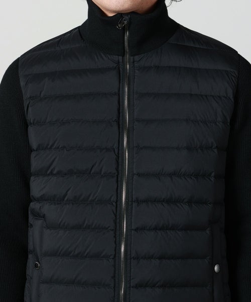【素材】 身頃はマットに仕上げたナイロン、襟と袖のニット部分には上質なメリノウールを使用。