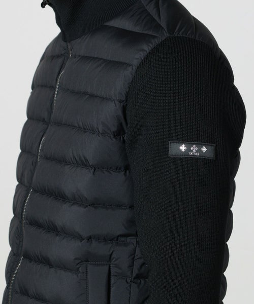 【デザイン】 TATRAS(タトラス)のダウンとニットを切り替えた、ドライバーズニット型ダウンジャケット。インナーダウンとしても使用できるコンパクトなサイズ感に仕上げました。 袖が伸縮性のあるニットのため、動きやすくアクティブに過ごすことが可能に。ポケットにはスナップボタンをあしらい、収納した小物等が落ちにくくなっています。 腰ポケットには保温性に優れた起毛素材を採用。 メタリックカラーのファスナーで高級感を演出しています。 インナーとしてはもちろん、単品でも様になるスタイリッシュなデザインの一着。