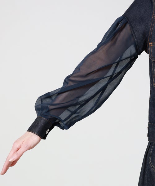 【素材】 デニム本体は綿100%。バルーンスリーブ部分はポリエステルボイルを使用しています。