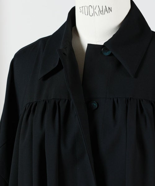 【デザイン】ENFOLD(エンフォルド)のブルゾン。ギャザーによる縦のラインが美しいカーブヘムが特徴のBIGシルエットです。ブルゾンというカジュアルなアイテムにも関わらず、衿付きタイプで大人の女性もカジュアルになりすぎずに着用していただけます。ワイドな袖は涼しく着用できるうえ、個性を出してくれます。また、同素材のアイテムとのレイヤードやセットアップスタイルがオススメです。