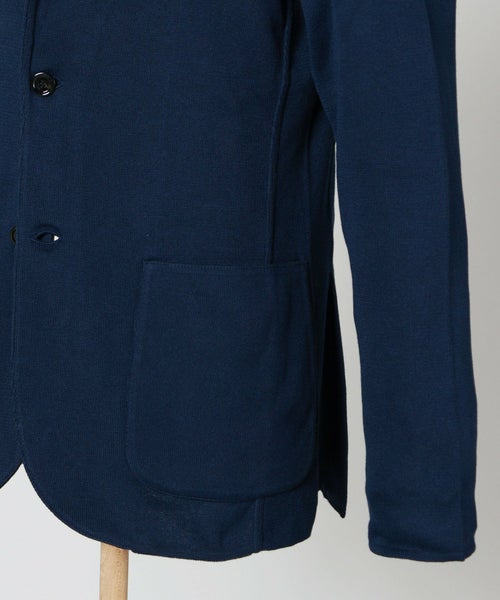 おすすめポイント:12ゲージのプレーンステッチ(平編み)で編み上げられたニットジャケット。 糸に強い撚りをかけることで生まれる「しぼ(凹凸)」により、肌への接触面積が減り、汗ばむ季節でもサラリとしたドライな質感が持続します。 カーディガンのような優しい着用感と、ニット特有の伸縮性によるストレスフリーな着心地が最大の魅力です。 織物のジャケットと異なり、シワを気にせずバッグに収納したり、車のシートに掛けたりできるため、旅行や出張のパートナーとして非常に優秀です。
