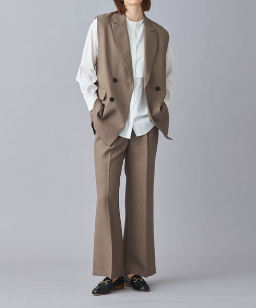 カジュアルからキレイめまで、どんなコーディネートにも対応するこのベストは、ワードローブに加えるだけで瞬時に着こなしの幅を広げてくれます。ヒップを程よくカバーする着丈は、スカートやパンツ、スリムからボリュームまで様々なボトムスと絶妙にマッチ。どんなシルエットでもバランスよく決まる設計が施されています。