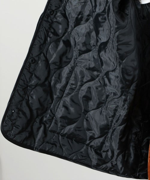素材感 : 表は綿ナイロン素材でヴィンテージライクな風合い。内側は中綿キルティング素材でレイヤード次第で冬も問題なく着回せます。