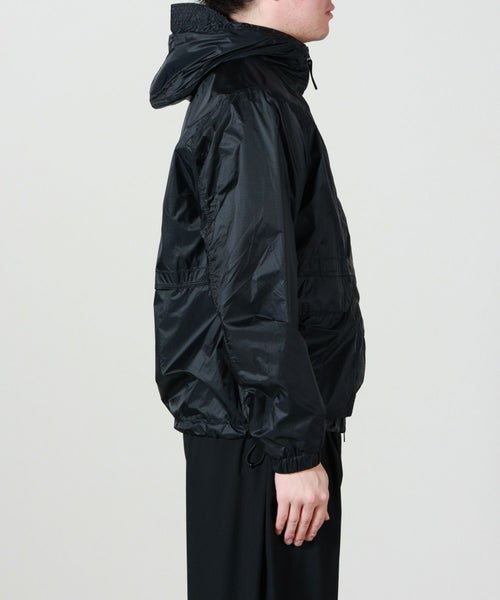 素材感:軽めのリップストップの生地が使用されており、防風性を持ち合わせつつも軽めに着用できる素材感です。