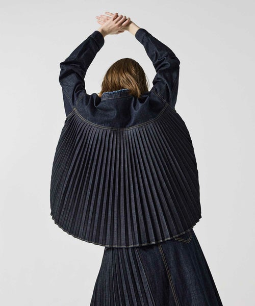 バックには大胆なデニムプリーツを施し、職人技を現代的に昇華させた唯一無二のアイテムです。