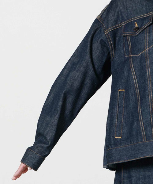 定番3rdタイプのデニムジャケットをベースに、ステッチやスタンドカラーなどの細部までこだわったデザイン。