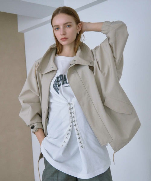 サイズ感:肩や身幅にゆとり感あるシルエット。ゆったりしていますが、立体感あるシルエットと張りがきちんと感を演出してくれます。適度な高さのスタンドカラーで小顔効果を出してくれて嬉しい♡