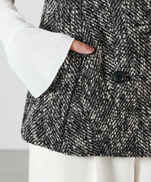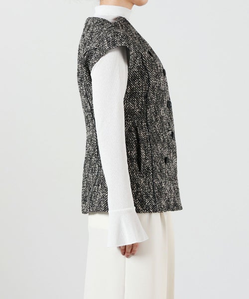 おすすめポイント:程よい抜け感とモード感を兼ね備えたツイードベスト❤︎立体的なシルエットと深めのVラインが、シンプルながらも洗練された印象を演出してくれます❤︎羽織るだけでスタイリングをぐっと引き締め、大人の余裕を感じさせる1着です❤︎