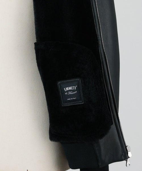 【デザイン】EMMETI(エンメティ)のジャケット。クラシックなミリタリーボンバージャケットの男らしさをベースに、EMMETIのフィルターを通して上品かつラグジュアリーに昇華させた、希少なムートンジャケットです。無駄のないシルエットと上質な素材使いが相まって、洗練された大人の雰囲気を漂わせます。リブ使いで軽快さを加えつつ、ラグジュアリーでありながらも日常使いしやすい汎用性の高さが魅力。