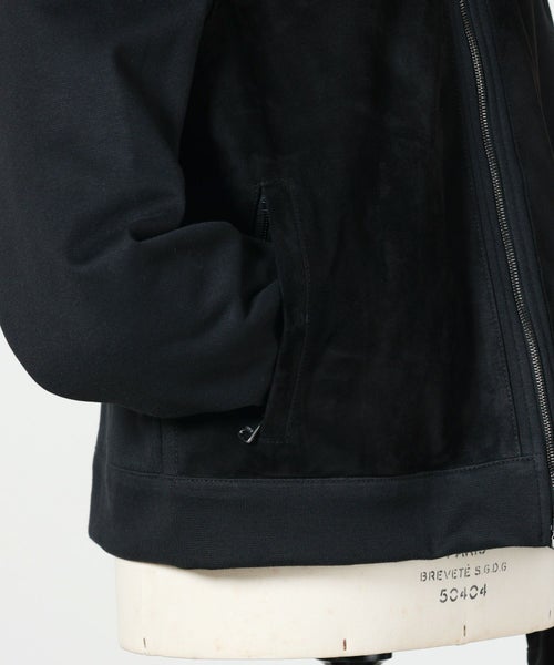 【素材】前身頃には柔らかな肌触りが特徴のラムレザーを使用し、その他の箇所はコットンジャージー素材を使用。柔らかな肌触りと快適な着心地が特徴です。