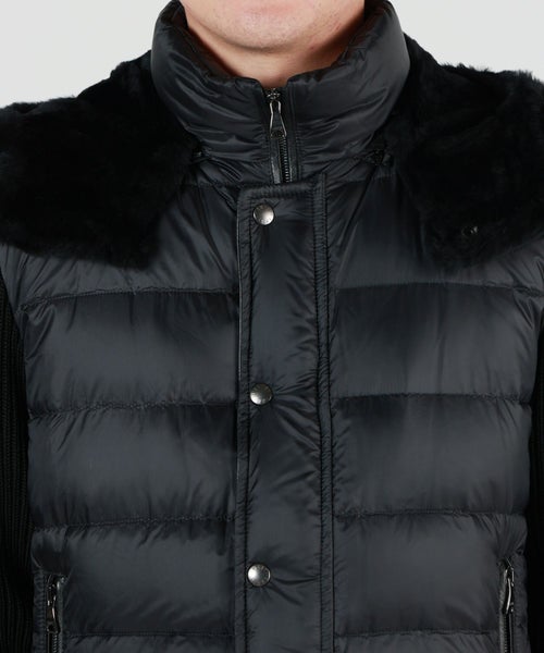 【デザイン】 EMMETI(エンメティ)のジャケット。NETTUNO身頃、袖、フードで素材を切り替えたEMMETIらしいハイブリッドなデザインです。ムートン×ダウン×ニットというゴージャスな異素材ミックスをシックに楽しむフードジャケット。程よい主張とエレガンスのバランスを楽しめるアイテムになっています。フードは取り外し可能な仕様なので、コーディネートに合わせて様々なスタイルをお楽しみいただけます。付属でダウン専用の洗剤がつくので、ご自宅でケアもして頂きやすい点もポイントです。