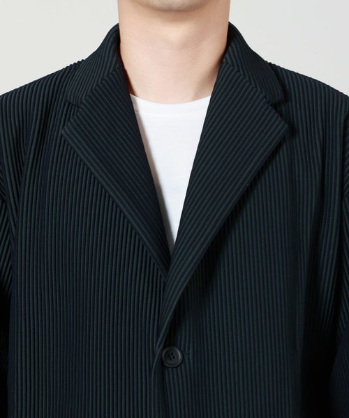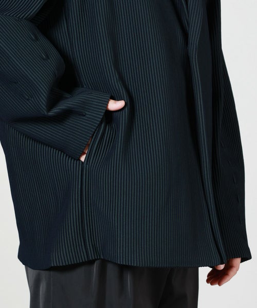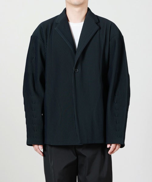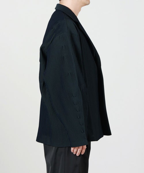 【デザイン】CFCL(シーエフシーエル)のジャケット。ピンタックを用いた立体感のあるストライプ状の編み地が特徴で、柔らかな陰影が生まれるデザイン。コクーンシルエットにより、ゆったりとした丸みのあるラインを描き、フロントはシングルブレストの一つボタン仕様。サイドシームポケットがさりげなく実用性をプラスしています。