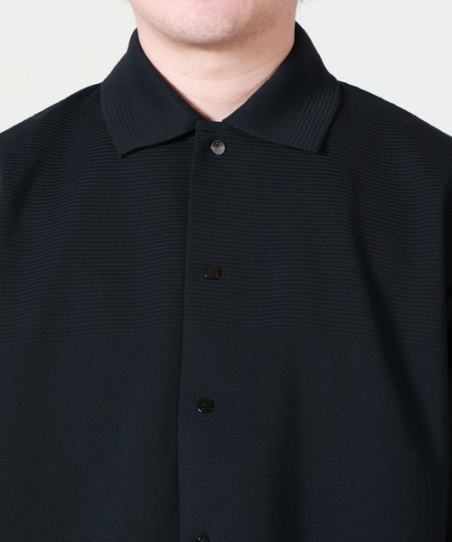 【デザイン】CFCL(シーエフシーエル)のソリッドなミラノリブを使用したシャツカラーブルゾン。ディテールや切り替え、ステッチを最小限に抑え、シンプルながらも洗練された印象を与えます。丸みを帯びた袖や、衿・肩・袖口に施されたピンタックが、独特の美しいラインを作り出し、ミニマルなデザインに奥行きを加えています。ロゴ入りのドットボタンがさりげないアクセントとなり、シンプルさの中にも特別感を感じさせます。