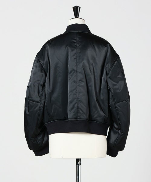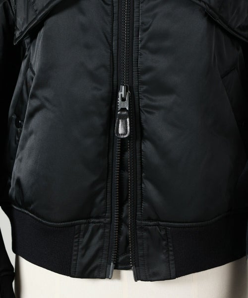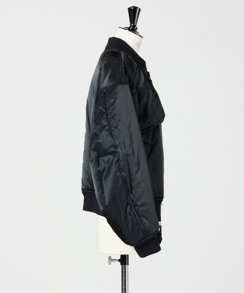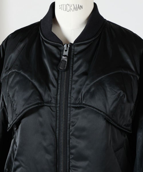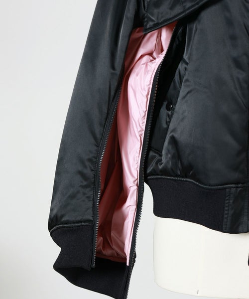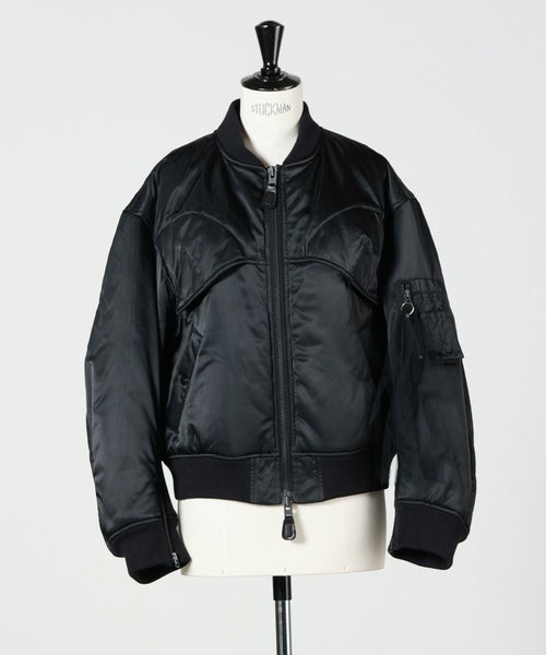 【デザイン】Chika Kisada(チカ キサダのブルゾン。カジュアルながら光沢感があり洗練された1着です。フロントのデザインは女性らしい丸みのある縫製が施されておりフェミニンなアイテムとも合わせやすいです。ディティールにチカキサダらしいチュールの装飾付きです。
