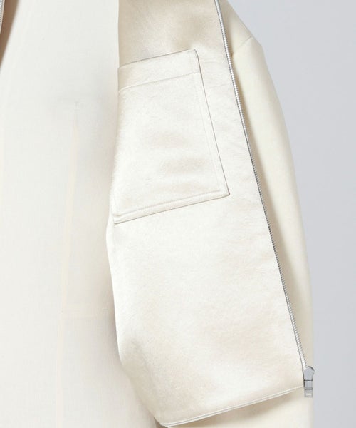 【デザイン】JIL SANDER(ジルサンダー)のジャケット。ミニマルな美学を象徴するジップアップ仕様で、無駄のない洗練されたシルエットが特徴です。スタンドカラーが首元をすっきりと見せ、モードな印象をプラス。袖口は切りっぱなしのディテールからインナーがのぞくレイヤード仕様になっており、シンプルな中にも立体感と個性を演出しています。シーズンレスで着回しやすく、オンオフ問わず幅広いスタイルに取り入れやすい一着です。