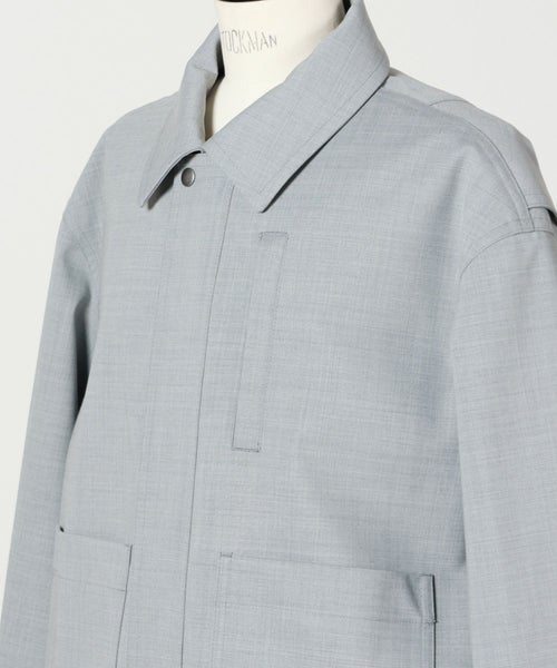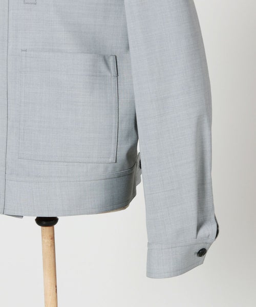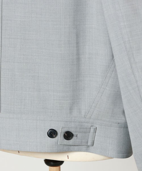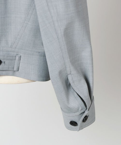 【素材】ポリエステル、毛、ポリウレタンをブレンドした素材を使用。触れるとしなやかで、ウール混ならではの柔らかな温かみを感じられます。着用時は適度な伸縮性があり、動きやすくストレスを感じにくいのが魅力。見た目はマットで落ち着いた表情を持ち、きちんと感がありながらも堅くなりすぎません。程よい厚みがあるため、季節の変わり目や肌寒い日のアウターとしても活躍します。