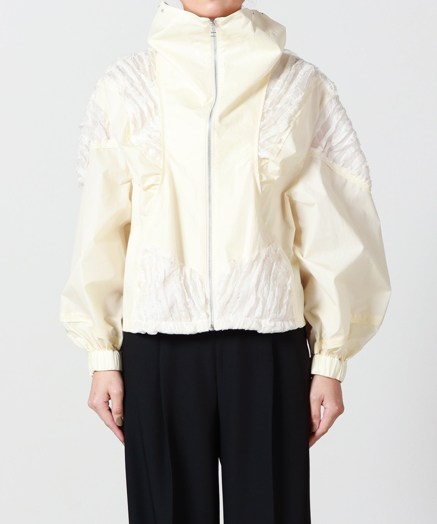 他の画像を見る SOLD OUT NEW 26SS price_p 【muller of yoshiokubo(ミュラーオブヨシオクボ)】 RUFFLE CHIFFON BLOUSON muller of yoshiokubo RUFFLE CHIFFON BLOUSON ¥ 75,900 税込 お気に入りに登録する ■■