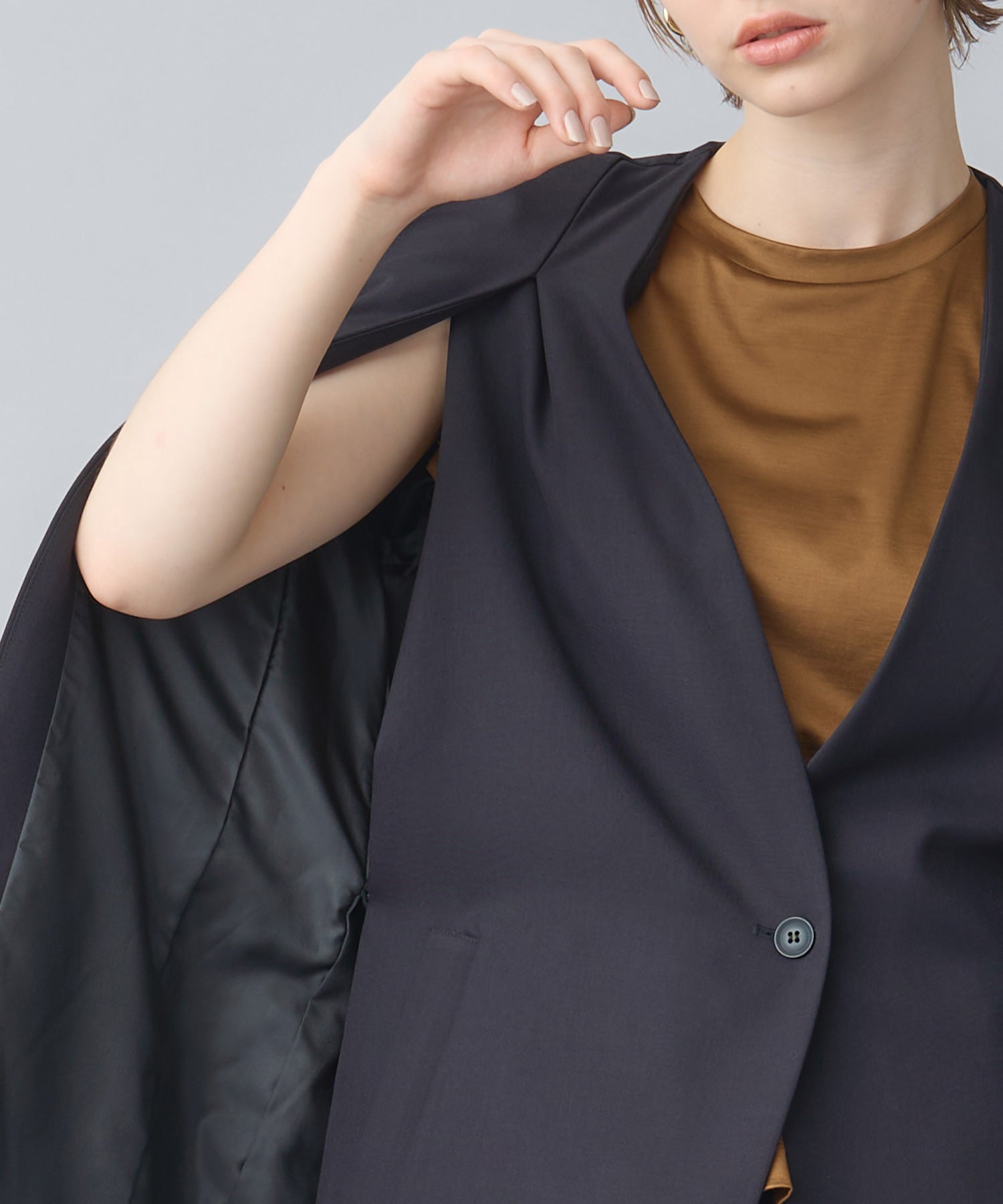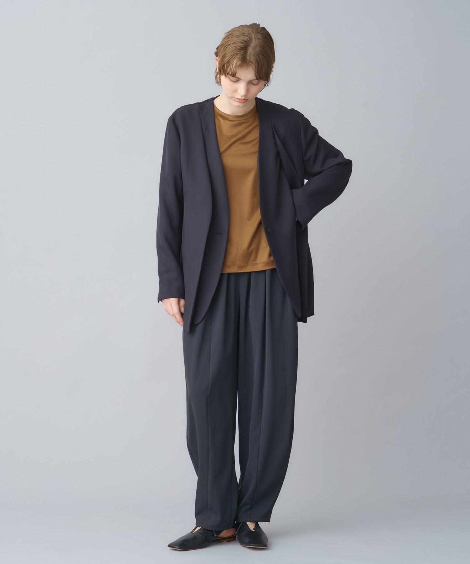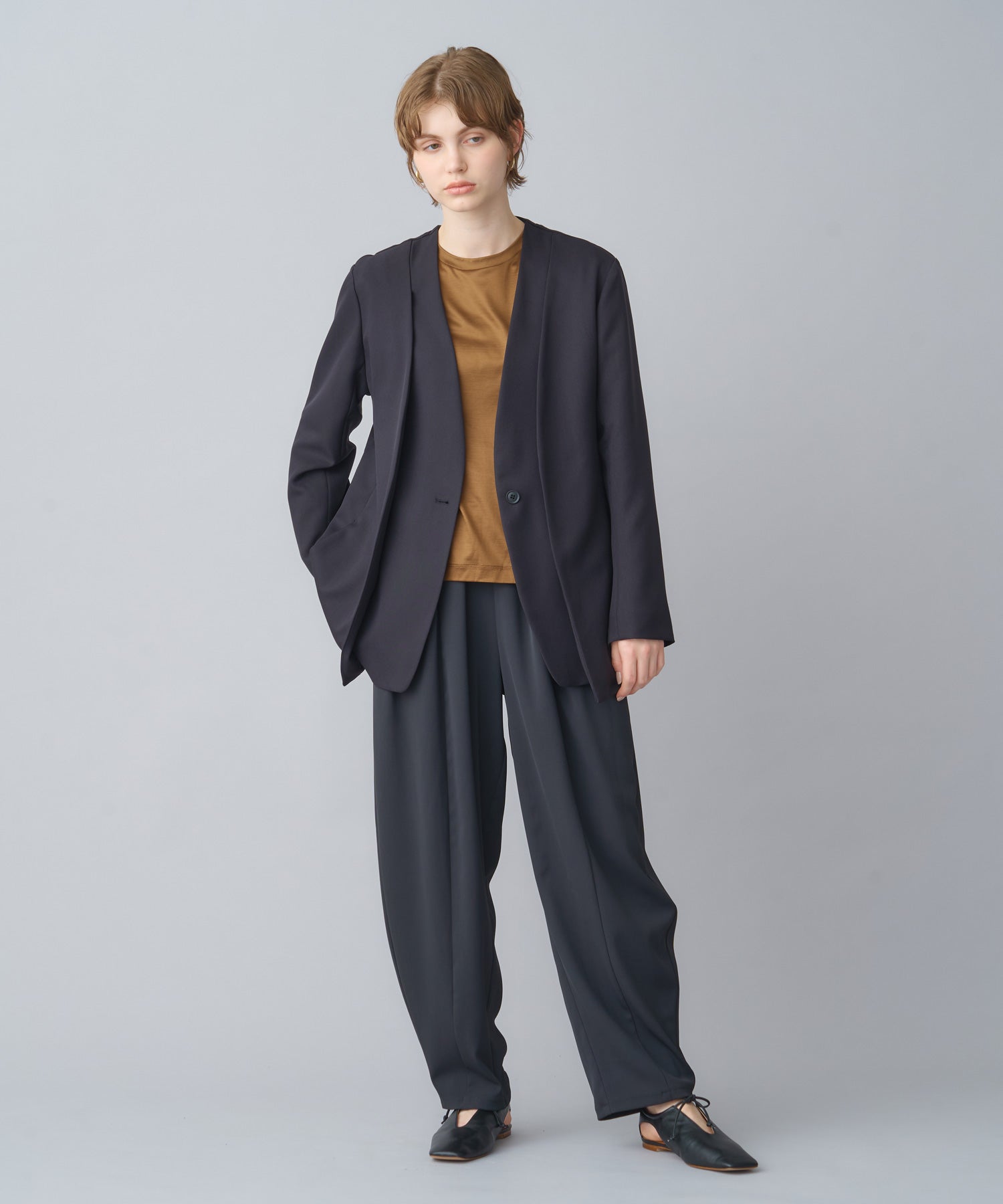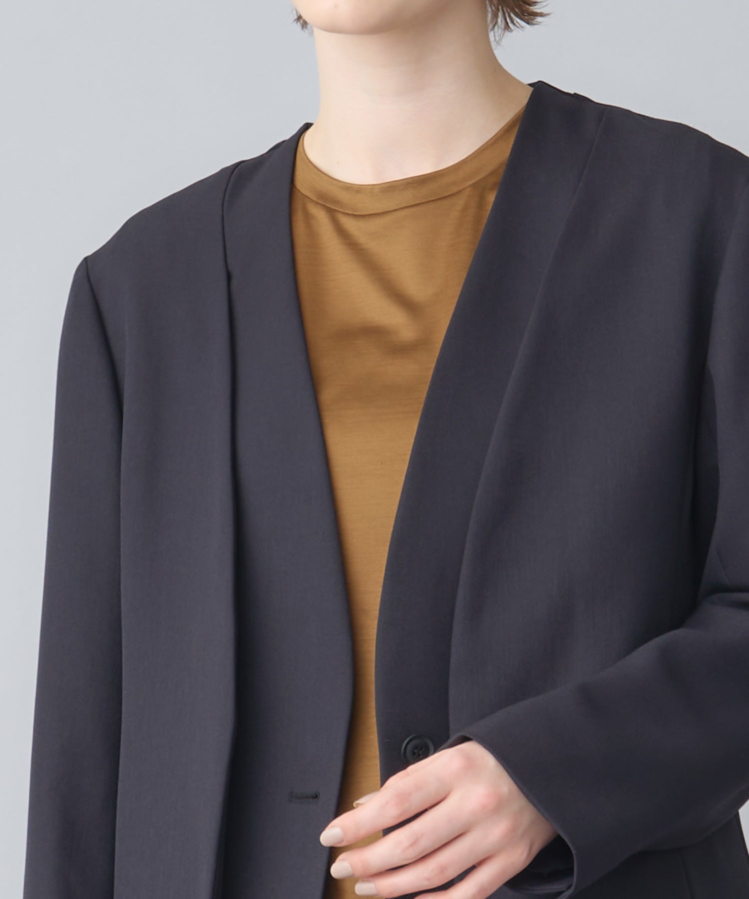 他の画像を見る SOLD OUT NEW 26SS price_p 【CINOH(チノ)】 NO COLLAR JACKET CINOH NO COLLAR JACKET ¥ 66,000 税込 お気に入りに登録する ■