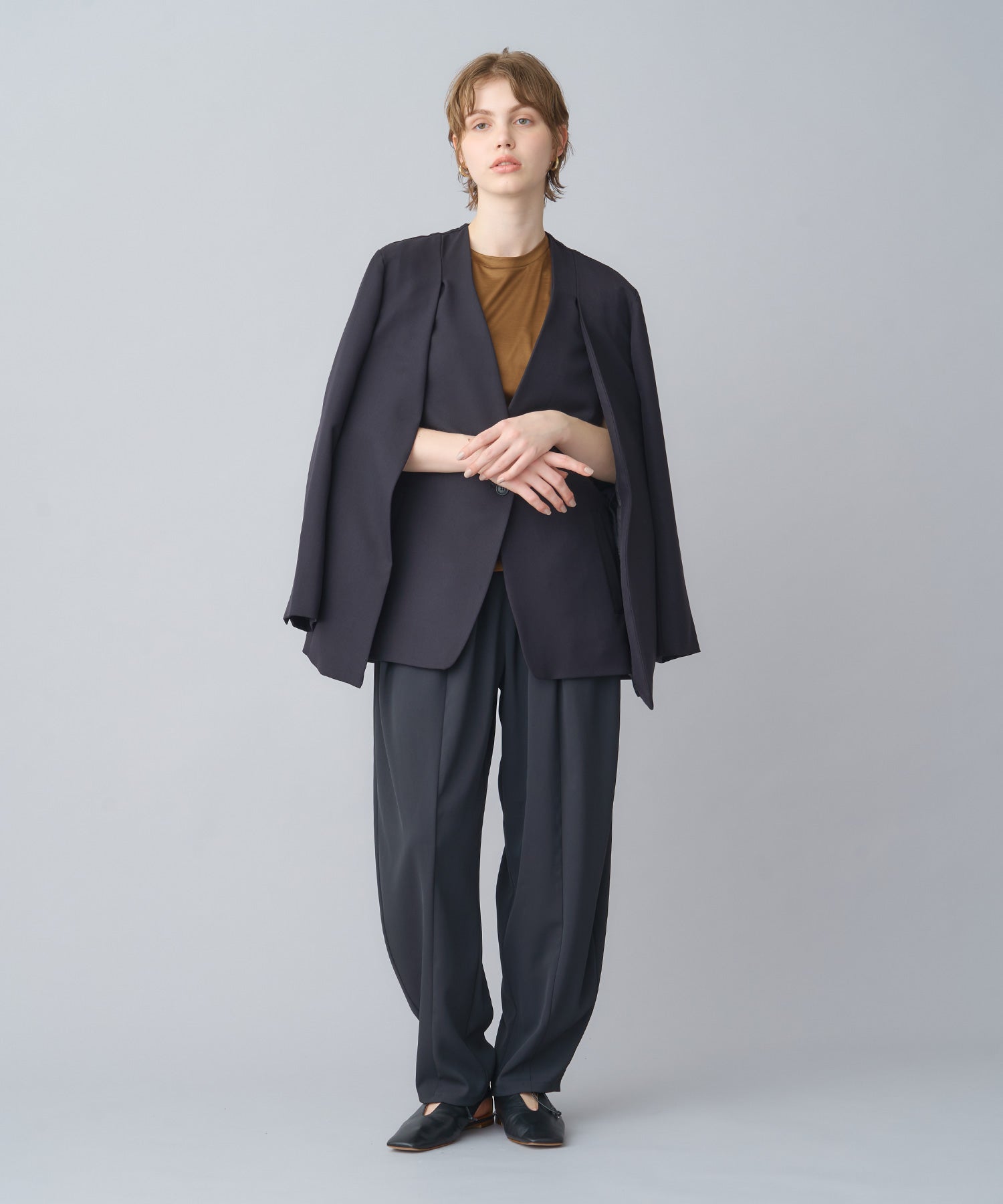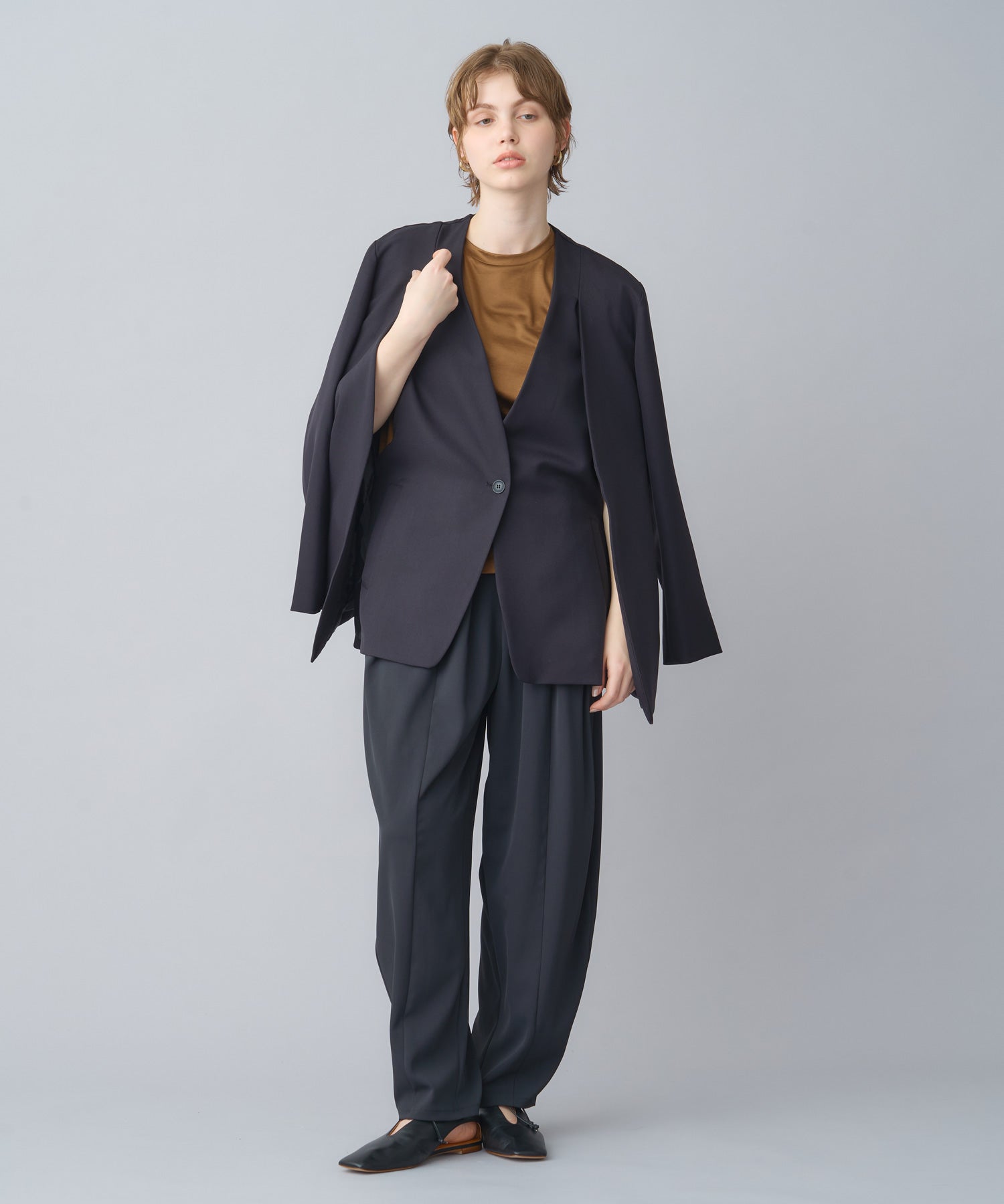 他の画像を見る SOLD OUT NEW 26SS price_p 【CINOH(チノ)】 NO COLLAR JACKET CINOH NO COLLAR JACKET ¥ 69,300 税込 お気に入りに登録する ■
