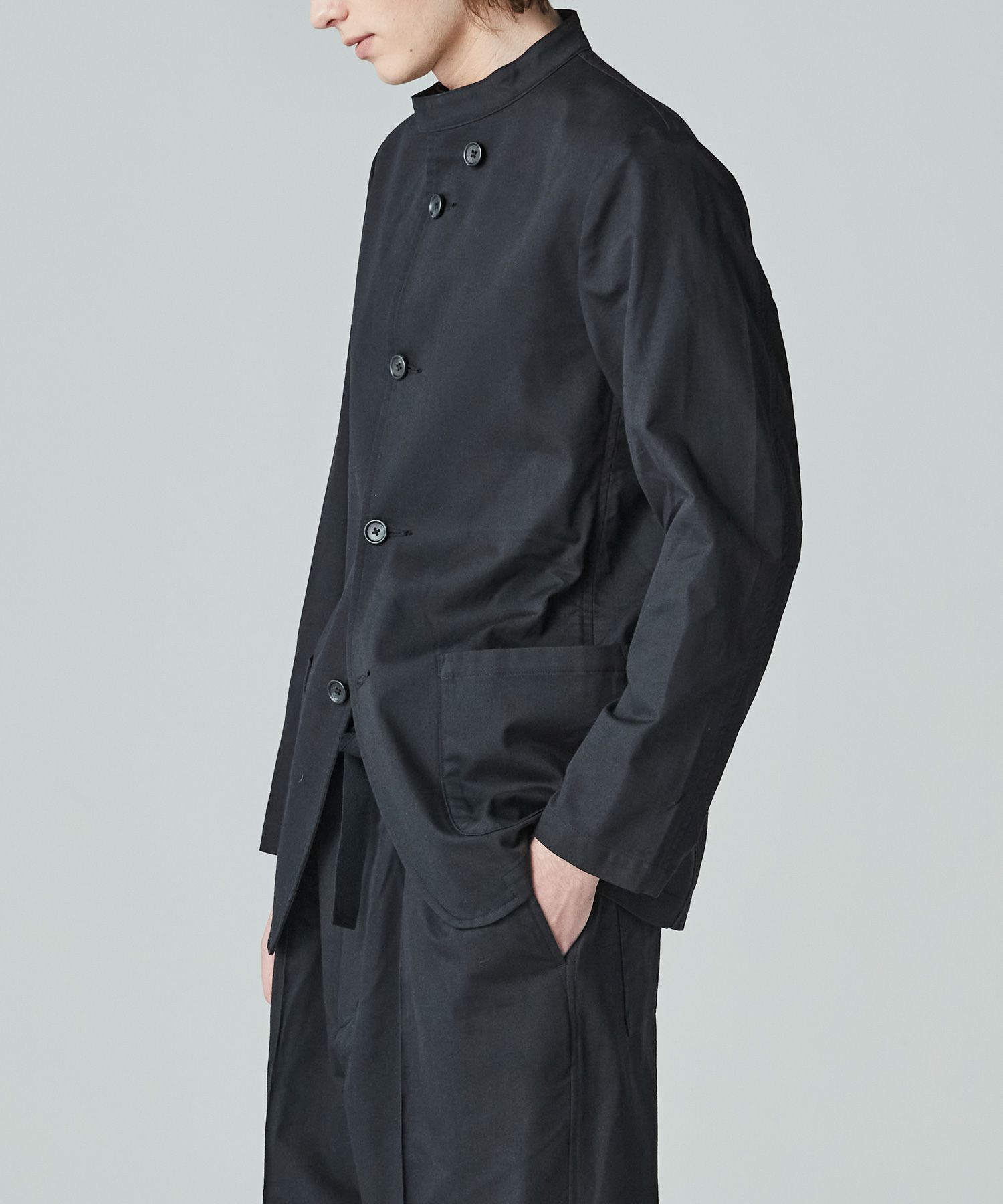 オフィサーカラージャケットは、ボタンの止める位置によって、シャツジャケットやテーラードと様々な着用が可能。日常的な着用はもちろん、同生地で作成されるボトムスとのセットアップスタイルによりドレスアップまで様々なシチュエーションに対応できる。