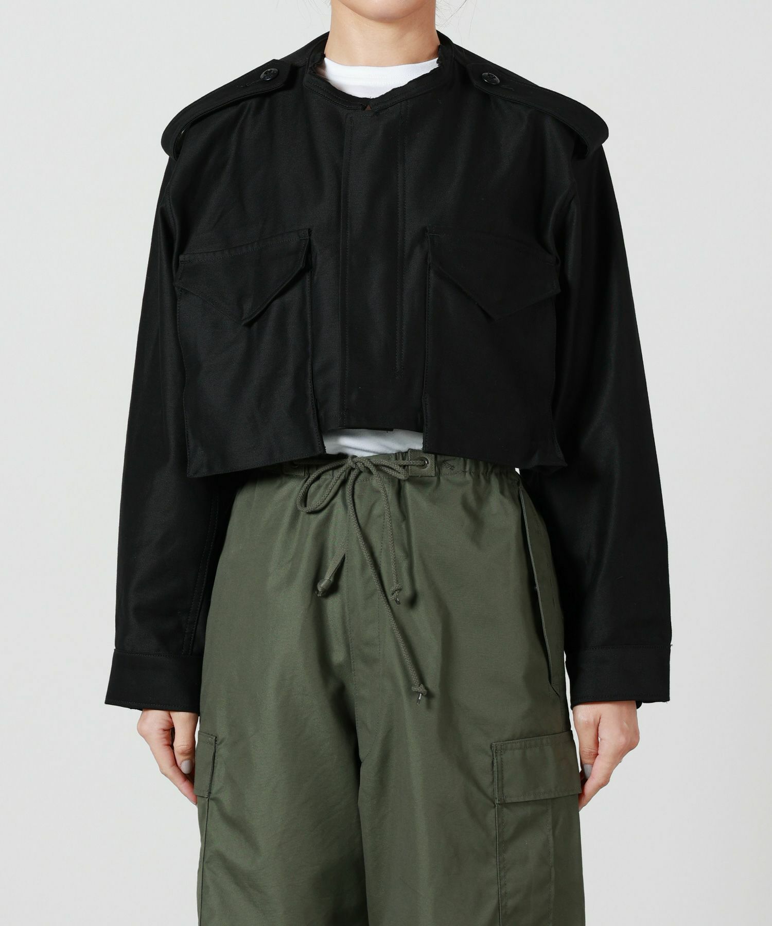 おすすめポイント:25SSでも目をひいたHYKEの『FIELD CROPPED JACKET』。 ショート丈+ノーカラーで、メンズライクなフィールドジャケットも、HYKEらしいスタイリッシュさと女性らしさを兼ね備えた一着に。個人的には少しお身体から泳ぐ、後ろから見たシルエットがポイントです、、♡