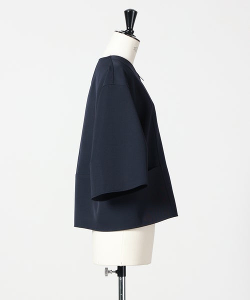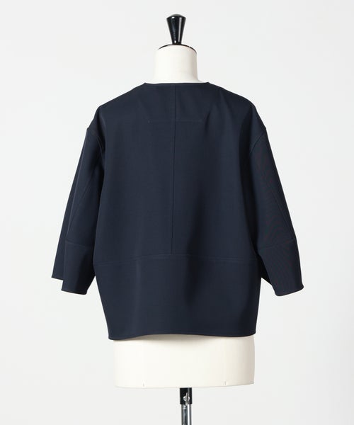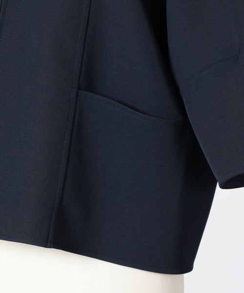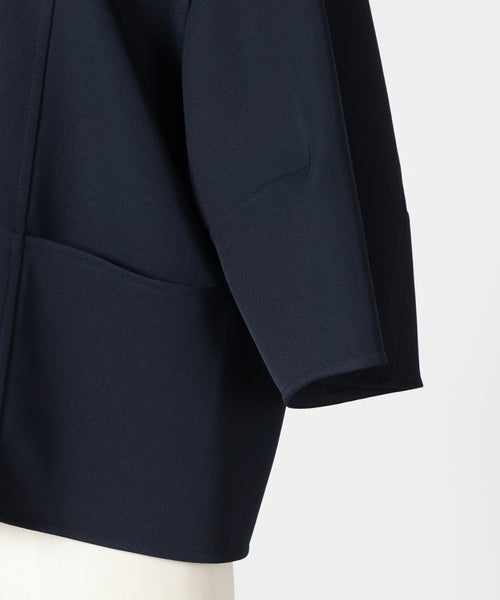 【素材】 本体にはウール100%を使用し、上質でしなやかな風合いが特徴。適度なハリと柔らかさを兼ね備え、美しいシルエットを保ちながら快適な着心地を実現します。ポケット裏地にはレーヨンを使用し、滑らかな肌触りで手を入れた際の心地良さにも配慮。上品な質感と実用性を兼ね備えた素材構成です。