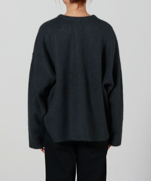 【素材】 ラクーン素材入りでふわっとした質感が特徴。長さや太さの違う毛がニットの表情を豊かに魅せてくれます。