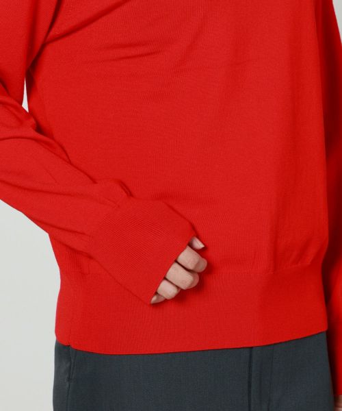 【素材】19.5ミクロンのエクストラファインメリノを使用し、しなやかな肌あたりが魅力。撚りを少し弱くすることで、エクストラファインメリノウールの持つ光沢や肌ざわりをより感じることの出来る素材です。ウールの良さを残しながら、防縮加工を施した素材です。