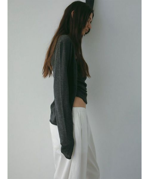 【素材】 しなやかな肌触りと上品な光沢をもつ、メリノウール100%を使用。柔らかい上質なウール素材で、素肌に触れても快適な着心地を叶えます。軽やかさと上品さを兼ね備え、秋冬の装いに温かみをあたえてくれる仕上がりです。
