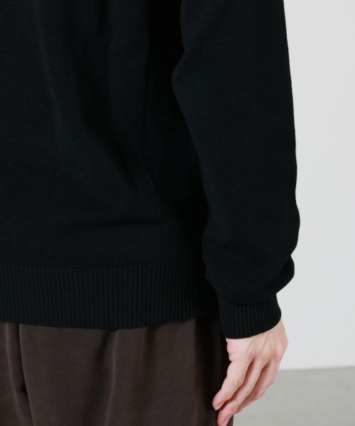 【素材】 RWS認証を受けたウールを使用した、ウール、ポリエステルの混紡素材。しなやかでやや伸縮性のあるタッチが特徴で、着心地の良さと快適なフィット感を両立しています。ウールの温かみと、ポリエステルの軽さ、耐久性を兼ね備えており、デイリーに着用しやすい仕上がり。程よい厚みで秋冬のレイヤードにも最適な素材感です。