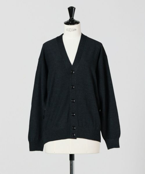 【素材】 アクリル50%、ウール50%のメリノウール混素材を使用。ウールならではのドライな質感と柔らかな肌触りを兼ね備えており、着心地は軽やかで快適です。適度な厚みがあるため、秋口から冬にかけてのレイヤードスタイルにも活躍。見た目には上品なマット感があり、シルエットを美しく引き立てます。着るほどに身体に馴染み、長く愛用いただける一枚です。