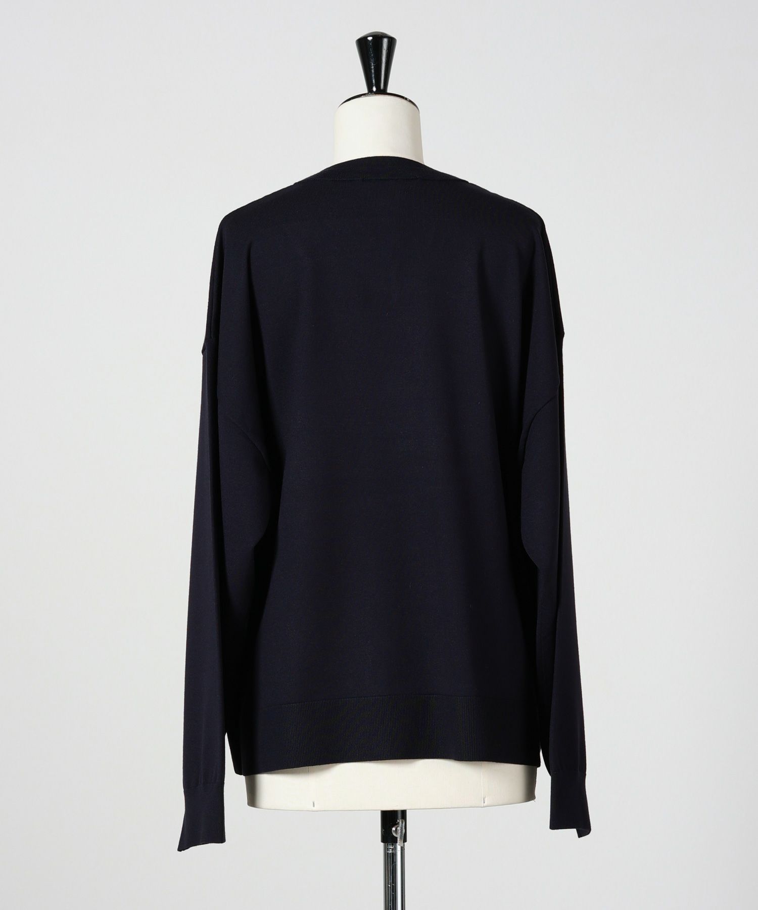 【デザイン】 ENFOLD(エンフォルド)のプルオーバー。まるでVネックのプルオーバーとカーディガンを重ね着しているかのような立体的なシルエットが特徴のドッキングアイテムです。計算されたレイヤード効果が、コーディネートに奥行きと上品な雰囲気を演出し、着るだけでコーディネート全体にこなれ感が生まれる汎用性の高さも魅力的な一着です。