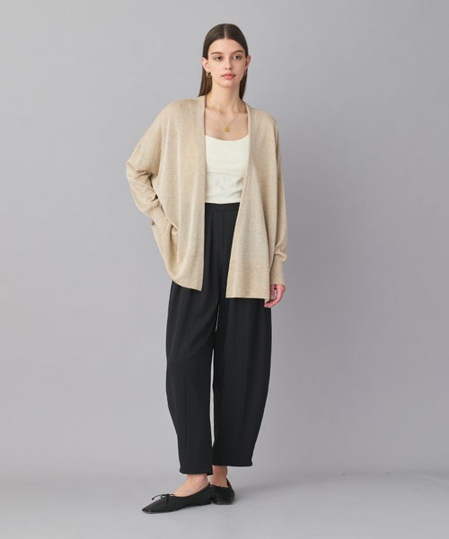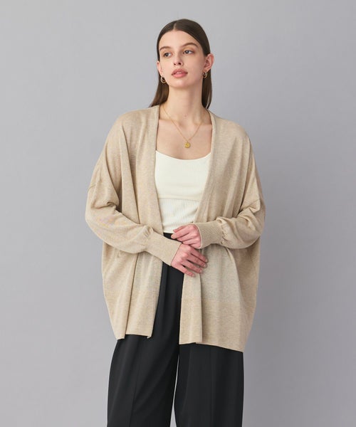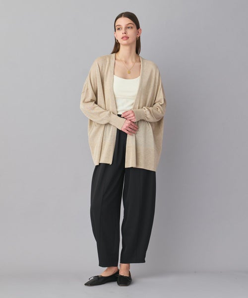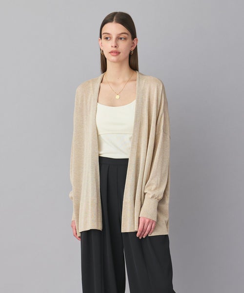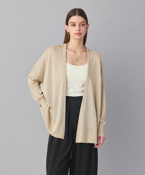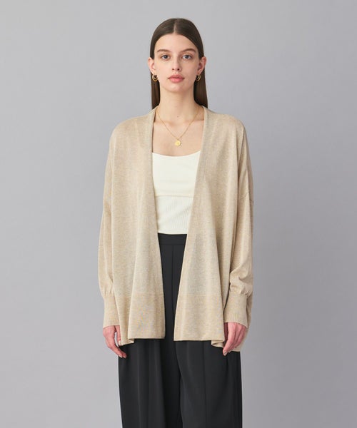 【デザイン】ヒップが隠れる絶妙な長さで、どんなアイテムにも羽織りやすいカーディガン。身幅がゆったりとしたリラックス感のあるシルエットは、肩ひじ張らず気軽に羽織りやすい一枚です。しなやかで清涼感のある風合いで毛羽立ちが少なく、シャープな編み目が特徴です。計算された絶妙な丈感とシルエットが魅力です。