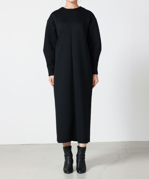 【デザイン】 MICA&DEAL(マイカアンドディール)のコクーンシルエットのワンピース。ボディラインを拾いにくく、一枚で旬な雰囲気に決まるシルエットにこだわったワンピースです。キレイみえしますが、カットソー素材なのでの程よくラフでコンサバすぎないアイテムです。立体的なシルエットがミニマルな印象に仕上がりました。キックバックの良いストレッチ性があるので、イージーな着心地です。カットソー素材ながらもきれい見えするワンピースなので、BLACKは合わせる小物次第でセレモニーにも活躍してくれます。