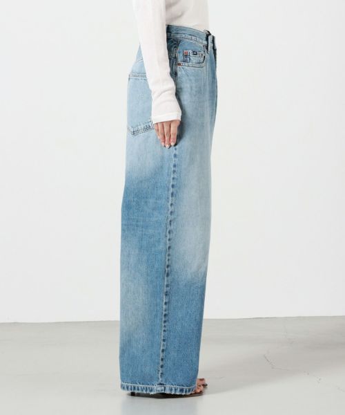 【デザイン】DENHAM(デンハム)のデニム。新たに登場した「KIKO」は、スーパーバギーフィットのデニムで、クラシックなリジッドデニムを使用し、ライトウォッシュ仕上げでヴィンテージ感のある風合いに仕上げられています。低めのウエスト、ワイドレッグ、長めの丈が特徴的で、リラックス感のあるシルエットが魅力です。デザインはトレンドを取り入れつつも定番のスタイルを大切にし、様々なコーディネートに合わせやすいアイテムです。ボタン留めの前開きがアクセントになり、カジュアルながらも洗練された印象を与えます。