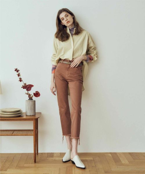 【スタッフ chi.】 身長:162cm/体型:ウェーブ/年齢:20代/普段サイズ:XS/着用サイズ:22インチ サイズ感:腰回りは程よくフィットし、ストレートでも女性らしい印象に。 おすすめポイント:いつものデニムスタイルをアップデートしてくれる秋色のニューカラーが登場♡ 美脚効果抜群のストレートシルエットで、ウエスト位置が高く、脚長効果もございます!